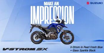 Your search for a Suzuki V-Strom SX showroom has brought you to Kanak Suzuki, Takka Old Panvel, Mumbai, a one-stop-destination where you can buy your new V-Strom SX in Mumbai. At Kanak Suzuki, you can enquire about the ex-showroom price of the Suzuki V-Strom SX, get a quote for its on-road price, explore the top features and accessories of the Suzuki V-Strom SX, avail insurance and finance for your bike, or inquire for the best available offers & discounts. You can also book a test ride online at Kanak Suzuki, Takka Old Panvel, Mumbai, to experience what the bike has to offer. Equipped with a 249cm³, 4-stroke, single-cylinder engine, the Suzuki V-Strom SX is a popular sport adventure tourer that offers nimble handling and a lightweight build for manoeuvring through city streets, while its sporty performance ensures thrilling rides across varied terrains.